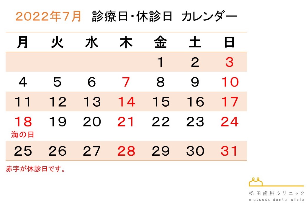 2022.06.27 | 2022年7月 診療日・休診日のお知らせ