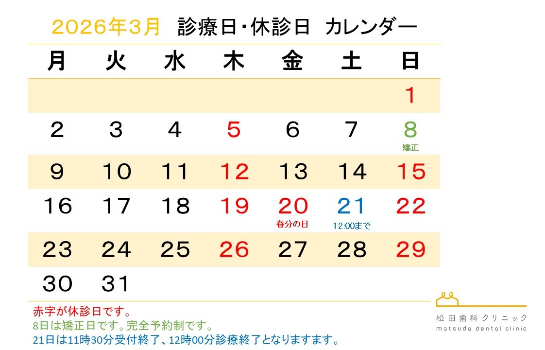 2026.02.25 | 2026年 3月 診療日のご案内
